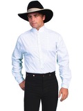 Description: The wing tip collar and inset bib of this shirt are indicative of the formal shirts that were used in more formal settings. It is gathered at the center back yoke, a collar stud and a rear tab to hold your tie. Pullover style. 100% cotton. Made in USA.